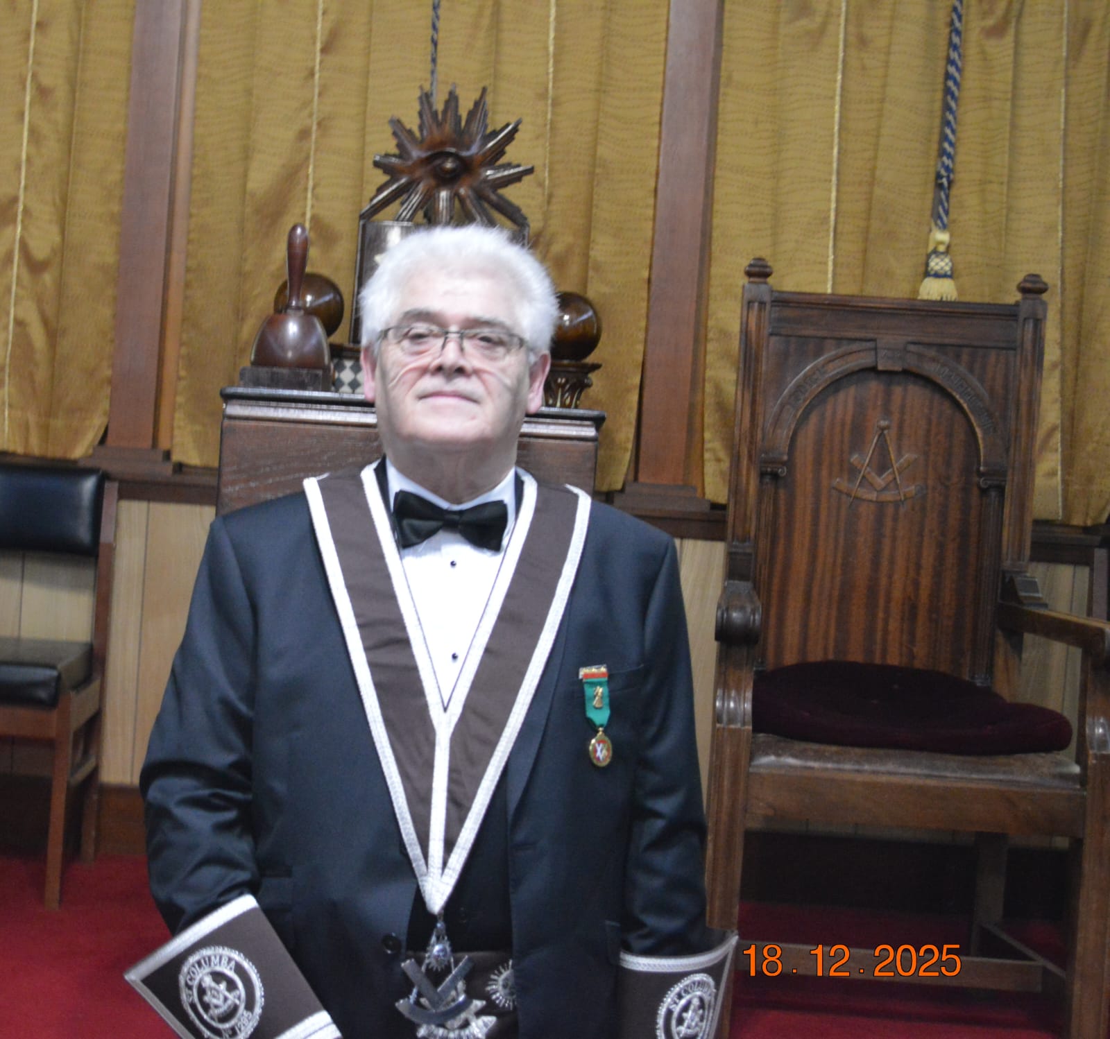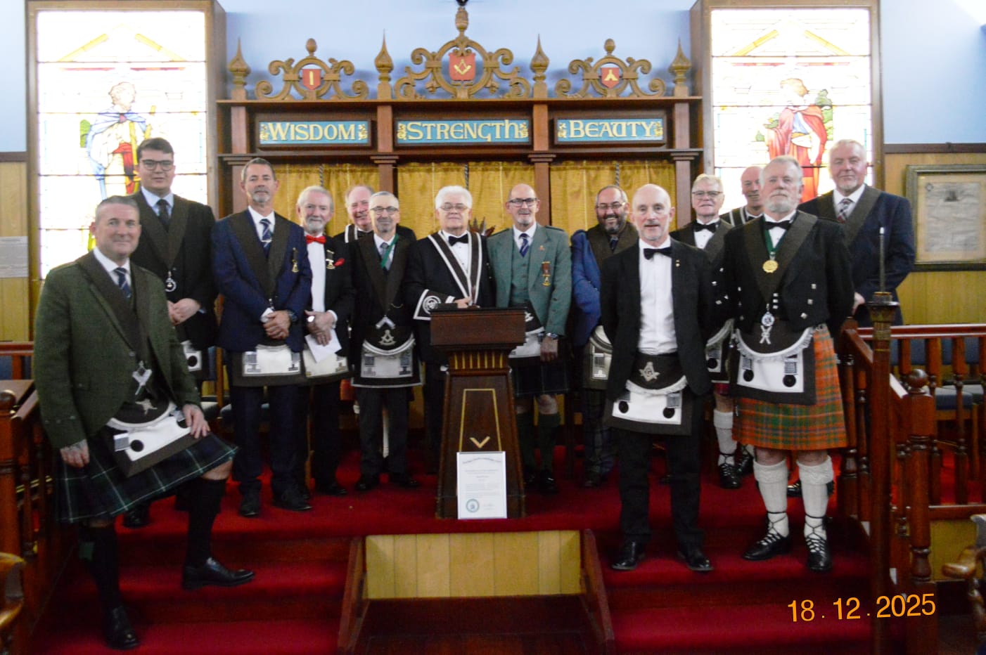 Lodge Centenary Stone Barry Fraser Presenting cheque to Mhairi Fraser for Hospice/Strictly fund raising